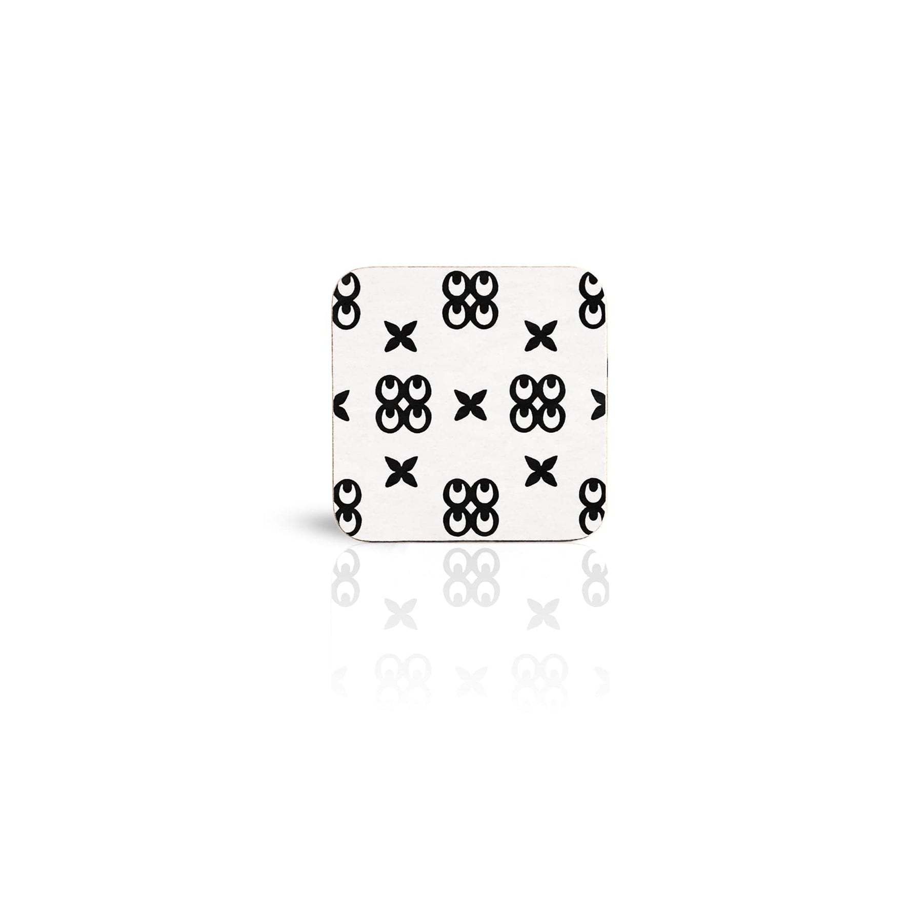 white Mate Masie adinkra square wooden coaster on white background.