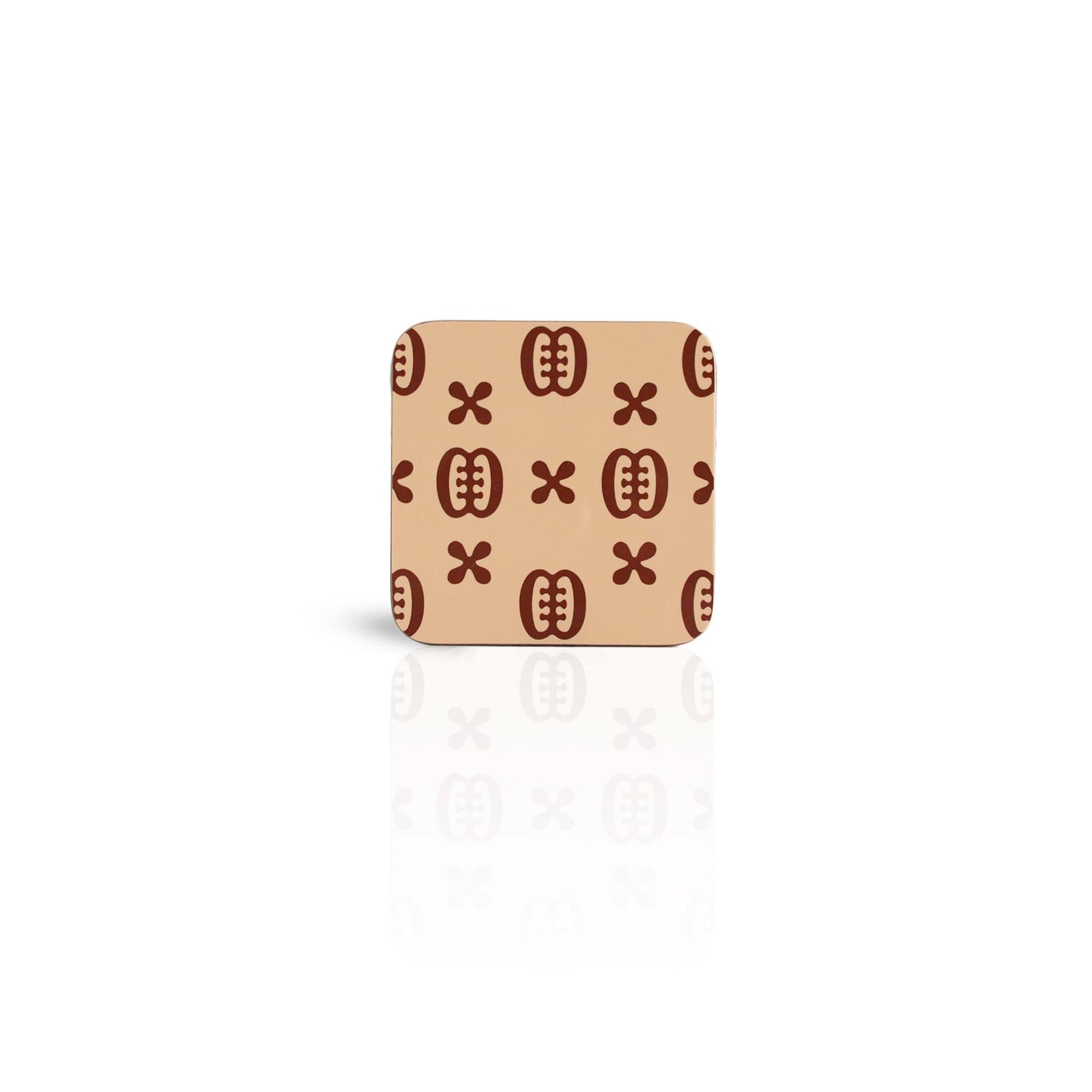 coffee coloured Ese Ne Tekrema adinkra wooden coaster on white background